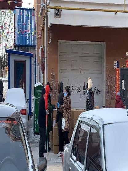 今天做的主要任务是帮助社区工作人员给小区内的每户分发物资。引导群众排队一个一个领物资,帮助一些残疾的或岁数过大的老人把物资搬到楼上,做好服务人民群众的工作。
