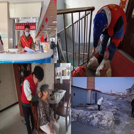 李超健加入化德县爱心志愿协会,在服务导办台为居民服务,在疫情期间使人们感受到当代大学生的温暖。袁伟在乌兰察布市主动走进社区帮忙打扫卫生并清理楼道垃圾,让每一位社区居民都为之感动,他们都说:“小伙子辛苦了”。刘丽杰在林口县地区疫情得到缓解后,关注到就近住房者均为老年人,考虑到老年人行动不便,出行安全是一个大问题,主动进行扫雪铲冰,将所处地区道路部分积雪、道路滑块及时清理。韩佳俊在潍坊市新城街道社区看望孤寡老人,给老人送去年货陪老人说话,给老人更多的关爱,更多的陪伴。