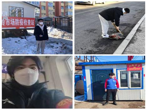 参加当地社区志愿者服务当中,在做好自我保护的前提下,开展宣传疫苗接种的重要性,普及返乡人员的健康管理要求、扫健康码、支援打疫苗等工作。志愿服务是奉献社会,服务他人的一种方式,是传递爱心,播种礼貌的过程。在第四学期活动时间中,我们小组成员都参加了三次志愿服务活动,在疫情严重时,对来往的车辆进行扫码测温,还有在社区进行清扫楼道同时,向群众积极讲解疫情防控知识,提醒群众要提高疫情防控意识,日常佩戴口罩、减少人员聚集等疫情防控知识,并配合社区开展一系列事务进行。