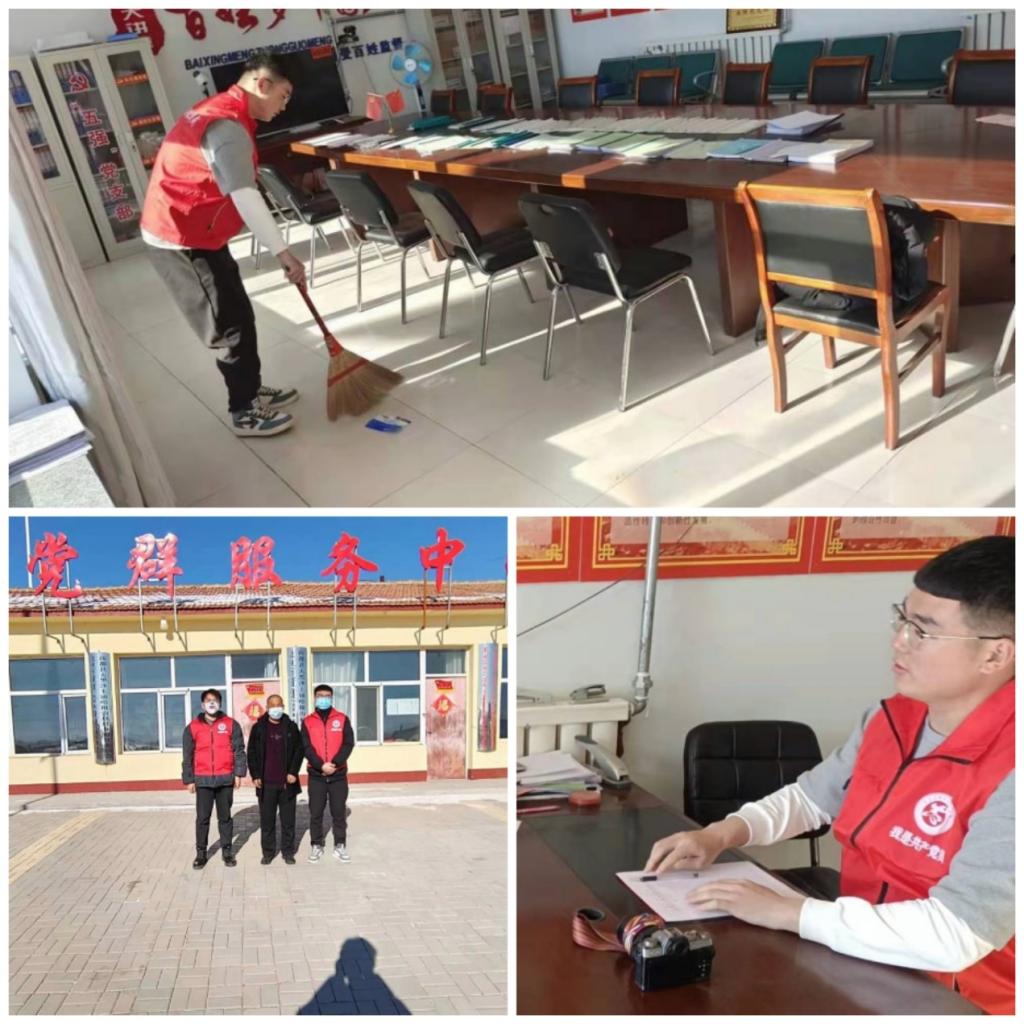 张志恒同学的主要工作内容是打扫卫生以及帮助社区对返乡大学生的统计工作。春节早已过去,但是这些志愿者们仍旧奋斗在乡村防疫的第一线上,为了村民的身体健康一直坚持不懈的奋斗着,他们用自己的能力在回报这个生养他们的地方。