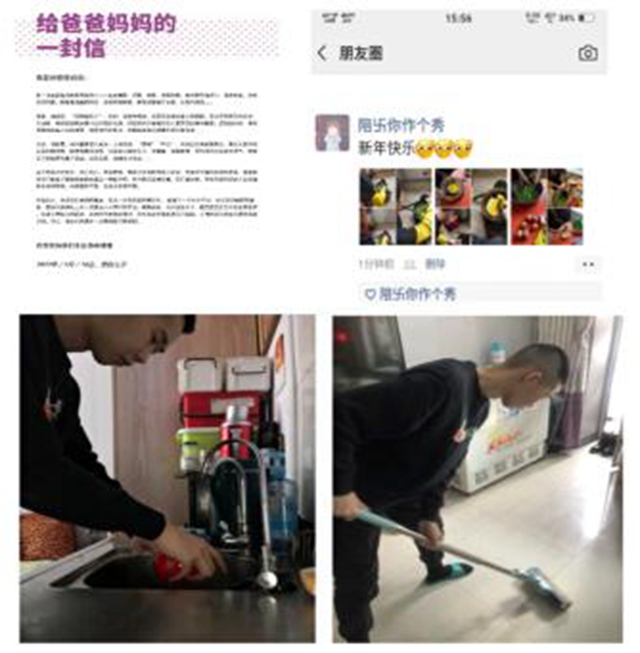 本次活动我们为父母做一次家务,以实际的行动报答父母的养育之恩。我们组的王刚和贾子玉两名同学帮助父母做了顿饭,而李泽兴和宋广淇两位同学则是帮助父母打扫房间。王刚同学还给父母写了一封信,我们从细微的小事开始去感谢父母,去爱父母,让父母感受到我们所带来的温暖。在这一系列活动中让我们第一次深入、细致地认识了自己的父母,体会到了父母无私的爱,更加懂得了热爱生活,珍惜父母给我们创造的一切。