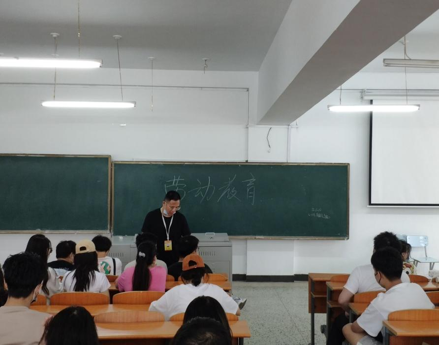 为了培养同学们的劳动意识。6月10日11:00,机电系辅导员徐飞老师在图101开展劳动教育班会,汽服201班金体在校同学参会。
