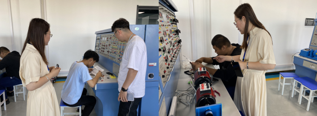为了提升学生实践动手能力,6月21日,机电工程系电气专业的教师汝晓艳、王立鹏到汽车大楼616教室对20级学生进行实习指导。
