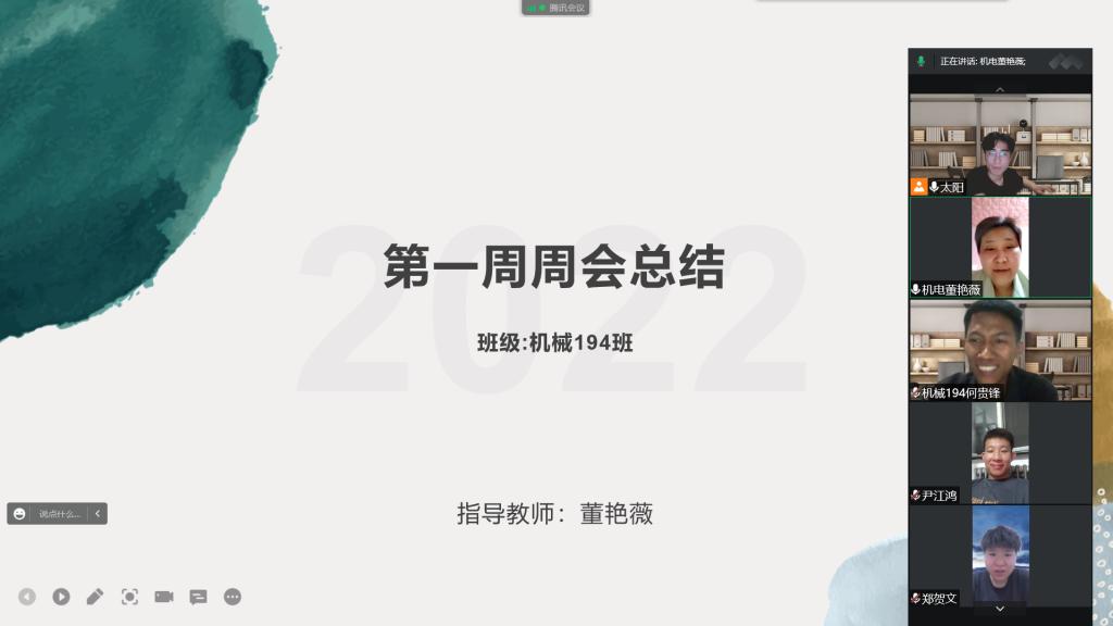 为了了解同学们第一周实习发生的相关问题,为接下来的实习工作提前进行部署,6月26日,董艳薇老师利用腾讯会议组织召开机械本194班第一周实习总结会议。