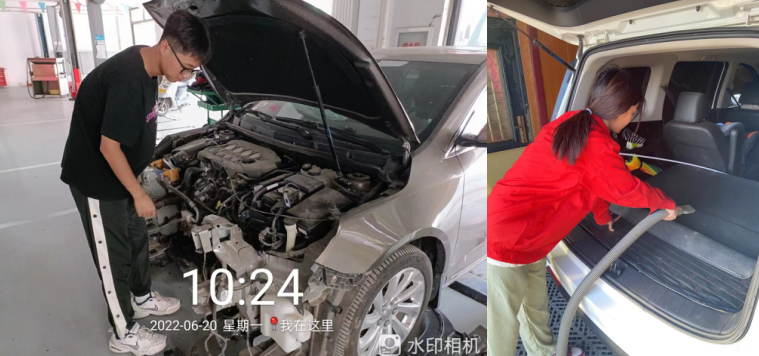 车辆211、212的王博、胡博栋说之前他们对汽车的构造这门课的学习仅限于课本,根本不知道实际情况是什么样子,但通过实习,更直观的学习到了汽车的各个部位的零件是什么样子的,还更加明确了各自的作用是什么,大大扩展了眼见。