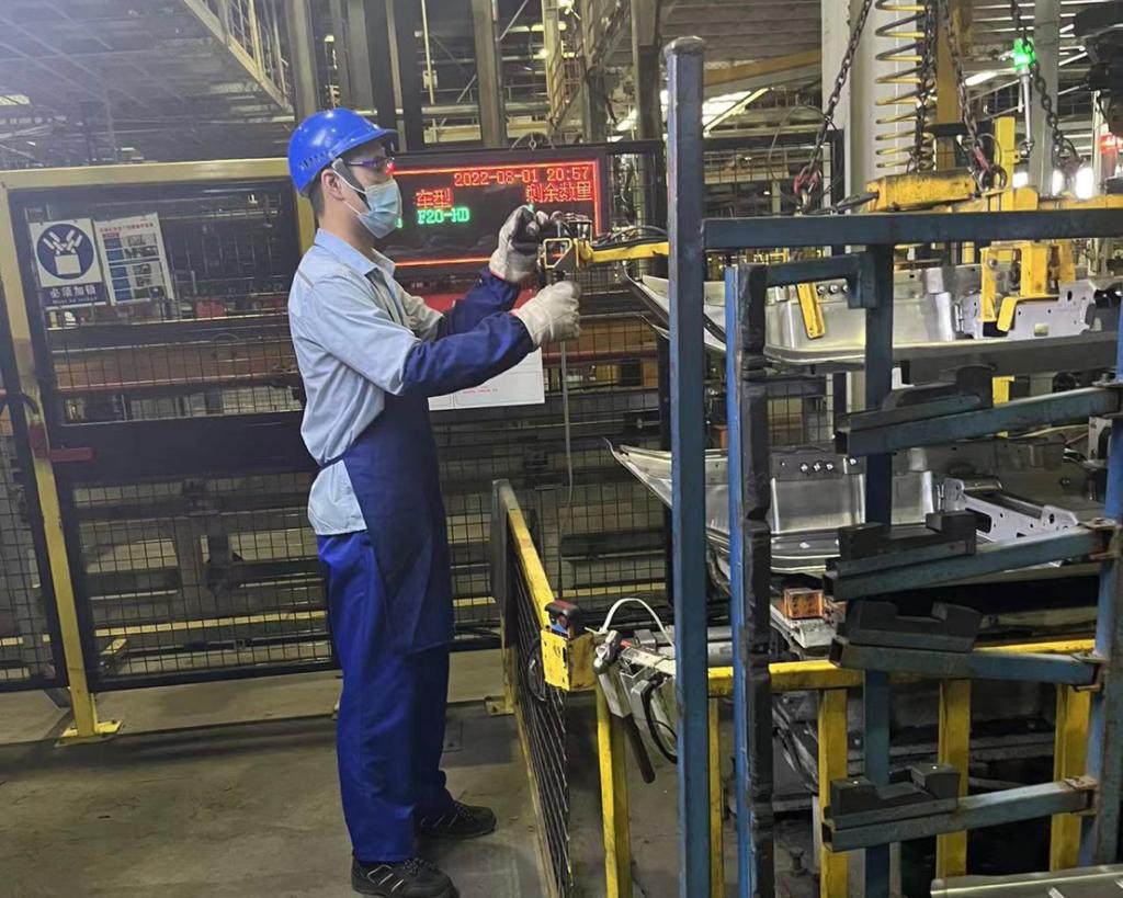 主要介绍组长杨玉宝,在焊装车间M1生产线,主要生产的车型有捷途系列X70和X90,其岗位在右侧围,对车辆的右侧围内版进行安装隔音胶块,该岗位锻炼其专注力和动手操作能力,在与老员工的配合下将内版装配在夹具下按下机械臂操作按钮即为完成工序。