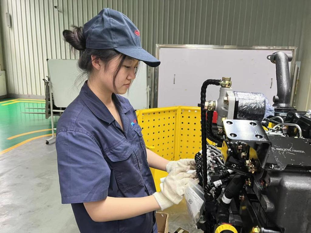 我实习所在的单位是柴油机公司,已经在这里实习了一个月,主要的工作内容有三个,一个是安装机油标尺,机油标尺的型号很多,最关键的就是安装之前确认好机油标尺的型号,不可以出错,还要确认方向,而且一定要拧紧;再一个就是在共轨机型上做防松记号,记号应连接线束和喷油;最后一个就是安装指针,指针需要用电动螺丝刀将螺钉打紧,不可以松动,防止隐患发生。这三项工作不是特别费时费力,但是需要做到仔细认真,防止发生型号不符,方向不对,记号漏画这几种情况发生。