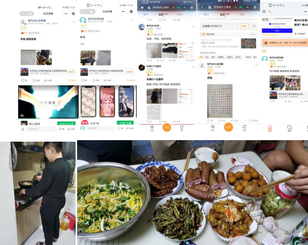 机电系56组结合我们自身原因,以及不能线下见面,我们选择了可选项任务影视赏析和居家锻炼,在本周内,杜仲腾同学观看了电影《建军大业》并写了300字的观后感。每一天,同学们都要在学习强国中学习,每日学习积分在35分左右。本周的感恩实践任务,大家不约而同选择为父母做饭,不仅精进了厨艺,增强了日后的生活技能,还让我们尽孝,让父母舒心。