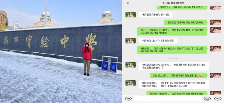 为了积极响应学校开展的回访母校实践活动的号召,我于1月10 日与高中班主任王永刚老师以线上通过微信的方式表达了想回学校看一看的想法,关系学校的变化等。但由疫情高峰等不可抗因素,导致鸡西市教育局紧急下发放假文件提前给初高中同学们放假。