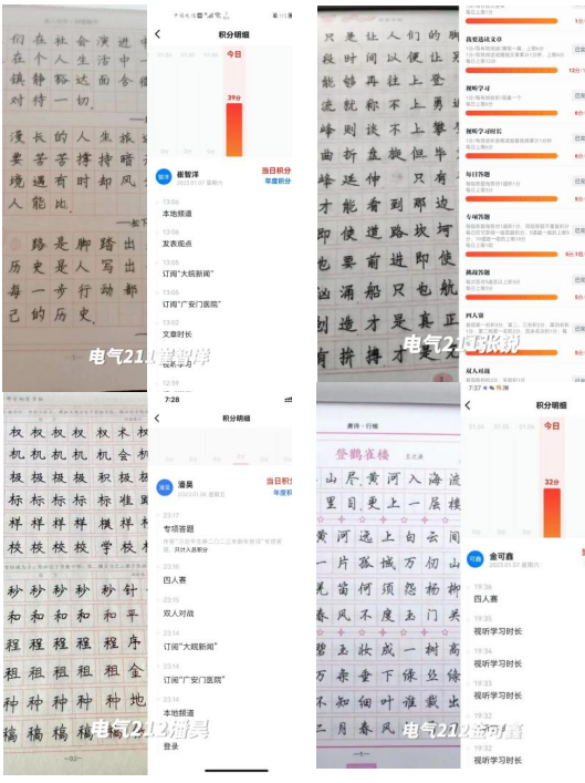 为丰富寒假生活,激发假期生活积极性,机电工程系第41组全体成员于第四学期第一周开展了每日字帖与学习强国打卡活动,活动由组长潘昊组织展开。