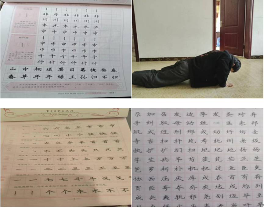 第四学期共有六周,以专业为单位进行3-5人的组队,党员学长协助生涯老师对我们进行指导。首先我们对可选项目(三选二)进行了选择,本组所有人都选择健身锻炼和影视赏析,每名组员对第四学期的学习都有很大的热情,每天都会利用学习强国app进行学习,既能提高党性修养,又可以增加学习内涵,使我们全方位了解国家。字帖也是每天按时完成积极性非常高,张丰同学在家进行锻炼,强身健体。