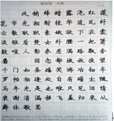 在第四学期开始后,同学们每日进行学习强国、临摹字帖、体育锻炼、影视赏析等等一些丰富的活动来培养学生们的生活,学校组织我们临摹字帖是为了规范我们的汉字书写。汉字的书写是一门艺术,使字体漂亮工整,对字体骨架的形成大有好处,不但可以陶冶人的情操,也可以调和人的性情。同时相信在每位同学的努力下一定可以写一手好字。