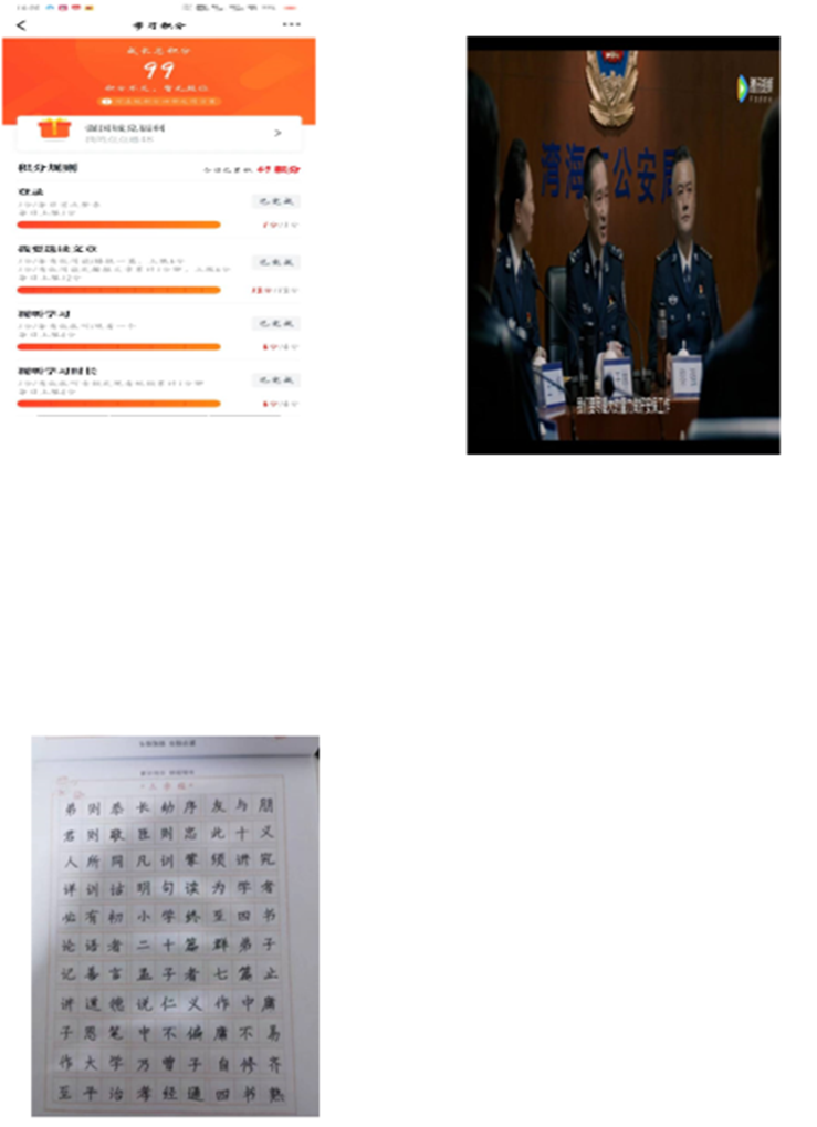 随着第四学期的开始,组长姜星羽开展了线上会议,为大家制定了合理的分工任务,提醒大家要注意时间安排,在志愿服务时也要注意安全,按时完成每日打卡任务,及时反馈完成情况。我们小组三个人,每周都会进行字帖练字,学习强国,锻炼身体,社会实践,电影赏析。