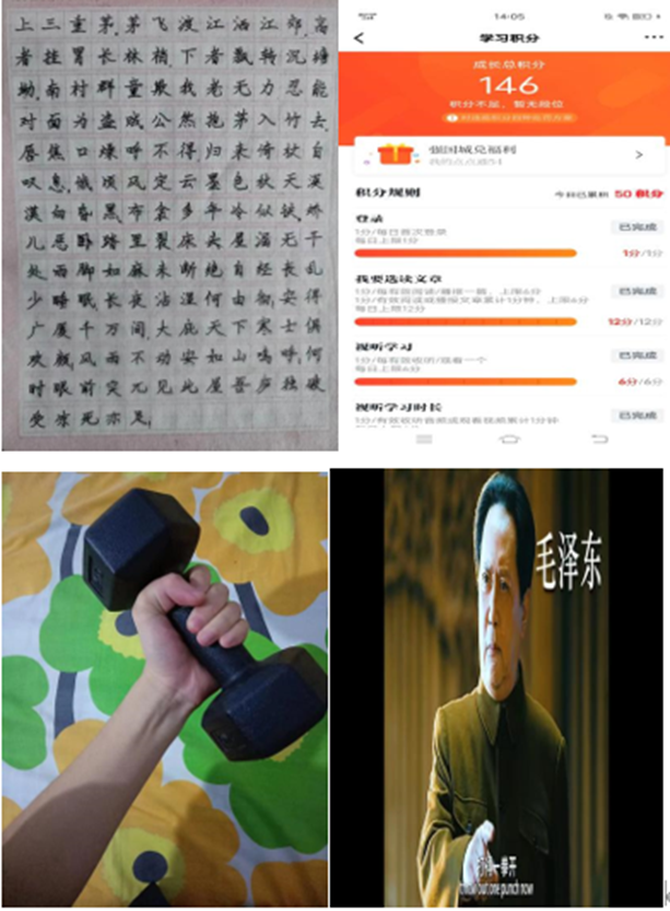齐齐哈尔工程学院为了丰富我们同学的寒假生活,于2023年特意为我们开启了″第四学期"这门课程,要求全校同学积极参加,目的是提高学生们自我动手,学会感恩等各方面能力,提升同学们的综合素质,努力培养志存高远、人格健全,基础扎实、特长明显,勇于创新、善于实践的高素质应用型人才,为服务社会走出。我们小组在2023年1月2~8日完成了第一周的任务,字帖,学习强国,锻炼,观看电影。