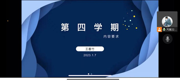 为了丰富我们大学生的假期生活,学校特意为我们准备第四学期,增强同学们的写作能力,欣赏能力,身体素质,三五能力和爱国主义情怀。于1月7日组长王墨竹给第四学期第246组小组成员以线上腾讯会议的方式讲解学期小组任务以及具体要求。