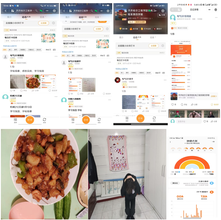 第四学期第二周已经过去了在此期间机电系7组每天都按时完成了字帖临摹和每周需要的感恩实践活动以及时政学习。选择了可选项任务影视赏析和健身锻炼,我们也深刻认识了第四学期得重要意义。