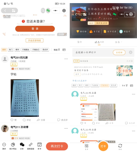 电气201班第四学期第二周,本周小组同学完成了字帖和学习强国的每日打卡。