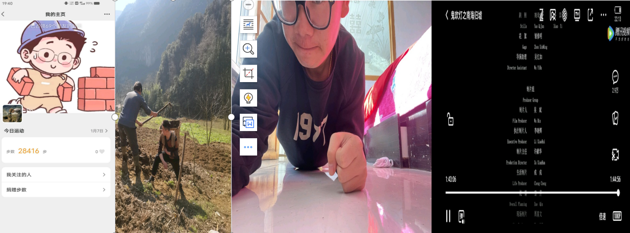 在第四学期中我组成员在第一周观看了学习强国和在家中描摹字帖同时并有一些成员进行居家锻炼和感恩实践。