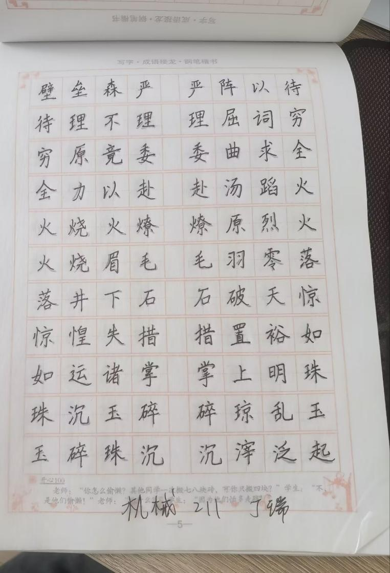 学校要求我们德智体美劳全方位发展,我们也深刻认识到这些,实践和学习结合,相得益彰。首先,我们进行字帖临摹,每天坚持书写,练习书法,不光可以提高我们的,书写能力,还可以修身养性,提高思维。在手机等电子产品的时代,可以在闲暇时间练习书法也是一件趣事。练习书法不仅仅是身体上的锻炼更是修心的过程,在临摹字帖的过程中,可以静下心来修身养性,字写得好能锻炼个人素质磨炼意志,同时还能陶冶情操在这两周的时间我们能明显感受出自己的字写的逐渐变好。