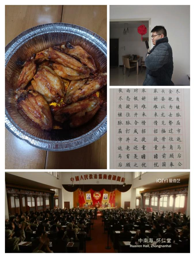我组成员黄靖然,刘泽序在居家活动中,每天书写一篇字帖,并上传到学习通交给老师。其次,在平时空闲时间,黄靖然同学为自己的家人做了奥尔良烤翅,虽然外观不是很好看,但是味道还是很棒的。在本周,师兵同学还参加了健身锻炼活动,在疫情放开的大环境下居家锻炼,增加个人的免疫力,能够更好的抵抗新冠病毒。