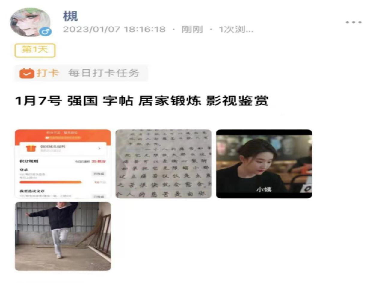 在本周的学习中,我们对于字帖和强国学习都按时完成,随后,我们也进行了居家锻炼和影视鉴赏,通过居家锻炼来提高自己的身体素质,通过影视的鉴赏学习,对于影视有着深刻的认识,通过观看电影,我们知道了它更深刻的道理,也提高了我们的艺术欣赏以及电影艺术欣赏的能力。