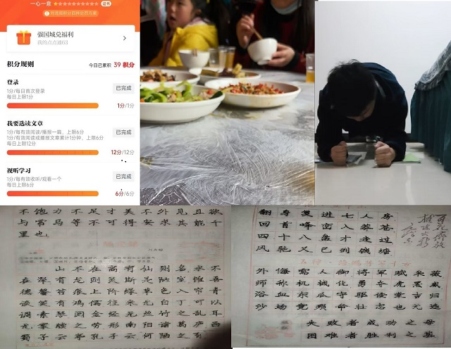 此外,本组成员都按时保量的完成学习强国的学习任务和字帖临摹。通过学习强国,我们不仅能学习到最新的时事政治、方针政策、国际动态,更能学习党的历史。通过学习“学习强国”,不断提升了综合能力,锤炼了党性修养。字帖临摹也增强了我们汉字书写能力,这也学校相当重视的“三五能力”之一。
