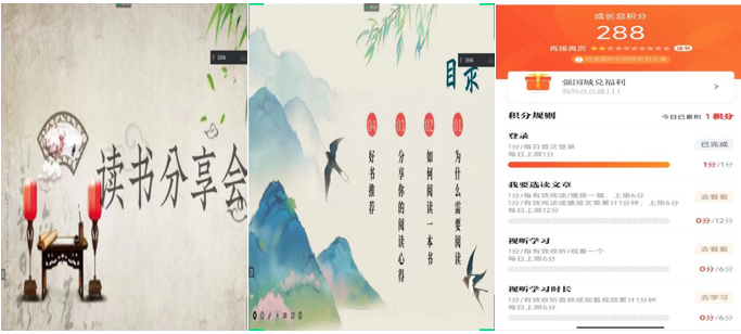 学生们在家里通过小组自觉组织读书交流会,通过线上的方式分享,每周在腾讯会议上开俩到三次读书交流会议,组长也会督促学生们关心国家大事,每天通过学习强国,观看新闻,答题,不断地丰富对国家的了解。读书分享会的目的为了提高同学们的文学学素养、增强团体凝聚力,活跃氛围、丰富同学们的业余生活。大力弘扬中华古诗词文化,让学生们充分领略古诗词的文化魅力,激发同学们对中国传统诗词文化的兴趣和热爱,努力营造书香校园。推进精神文明建设关心国家大事为了增长判断力,掌握国家事物的走向,躲避经济投资的失误,了解旅游目的地的安全形式,了解消费品的安全状况等等,与个人的生活息息相关。