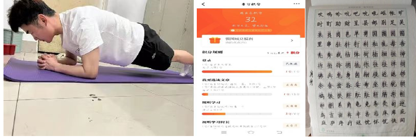 经过了又一周的相处,与组员进行一番交谈和观察后,我发现我组人员着重于身体锻炼方面的实践。在健身打卡方面,我组做到每天完成、积极完成,每次都能在其他人员中做到拔萃。锻炼方式更是居多,跑步、俯卧撑、平板支撑、哑铃等等。再说烹饪课,我组能够做到不缺勤、积极参与课堂互动。虽说课后作业因为各种原因无法进行,但能够在充满年味的课堂中与他人交流,也是一种受益匪浅的实践。