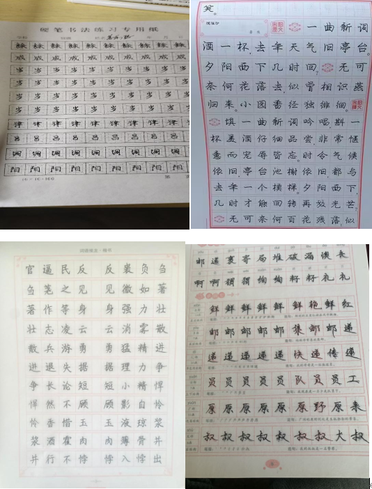 练字可以陶冶情操,磨炼人的意志。每当你心情愉快之时,你可以提笔挥毫,笔尖那流动优美的线条,跃然纸上。顿时心旷神怡,体会到写字是一种艺术享受,哪怕冰冻三尺,也要坚持练字,练字确实磨炼了人的意志。我们小组在第四学期坚持每天练字,以求得字体上的进一步提升。