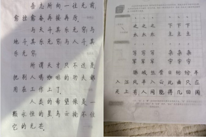 在第四学期的第一周,我们汽车服务工程244组的每个人都积极的完成每日临摹一张字帖这一项任务,并且上传微信小程序进行每日打卡。