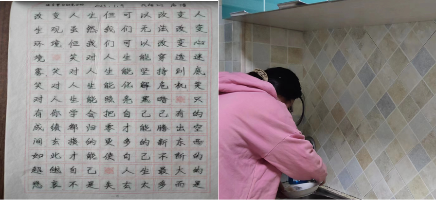 由组长刘璐带领组员:庞博、赵一鸣、张宏悦。在家开展了字帖临摹,学习强国。且除这些之外,我们组也更是在家帮父母做家务。第四学期不仅仅只是让我们应付任务,更重要的是能够丰富我们的实践动手能力。让我们能够不在懒散,以后自己有了家庭也能多干活会干活。