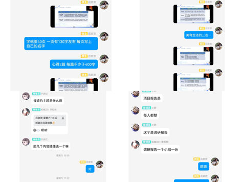 组长对组员详细讲解了第四学期每个项目是什么,要做什么,应该怎样去做,并跟大家一起讨论第四学期的工作。同时要求大家每天进行字帖临摹、读书活动、劳动实践等任务,按时打卡,认真完成作业。组长也分别对组员进行明确的分工,以及深入带动大家和谐相处。希望每个人对第四学期能够做出表态和承诺,在实践的过程中,不仅要按时按要求完成任务,还能够做到学有所得,学以致用。