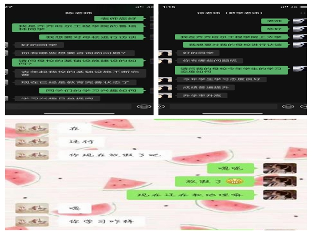 由于疫情原因,我们开展线上回访的形式。介绍我校的情况,对我校的衣食住行、校园文化等生活方面作了细致而全面的描述。最后,有层次地介绍了我校的奖学金制度,表达了欢迎大家报考齐齐哈尔工程学院的心愿。