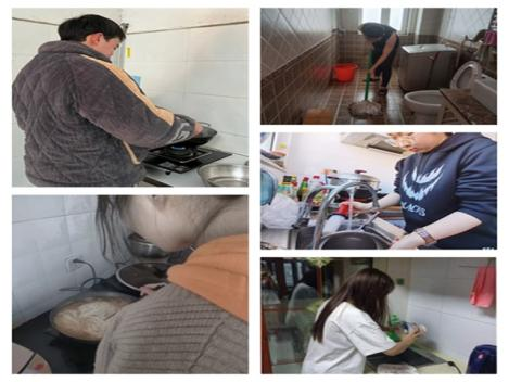 在这个过程中,我们不难发现,做家务就像是学习,重要的是掌握好的学习方法。小组成员们都在认真做起家务来。过程中我们打扫发现了很多地方都有着各种各样的问题,有很多的地方都需要注意,做家务确实非常累,但是那也是寻找幸福的一种途径,能让我们在劳动中实践,体验和理解父母的辛苦;培养我们不怕脏,不怕累的精神。