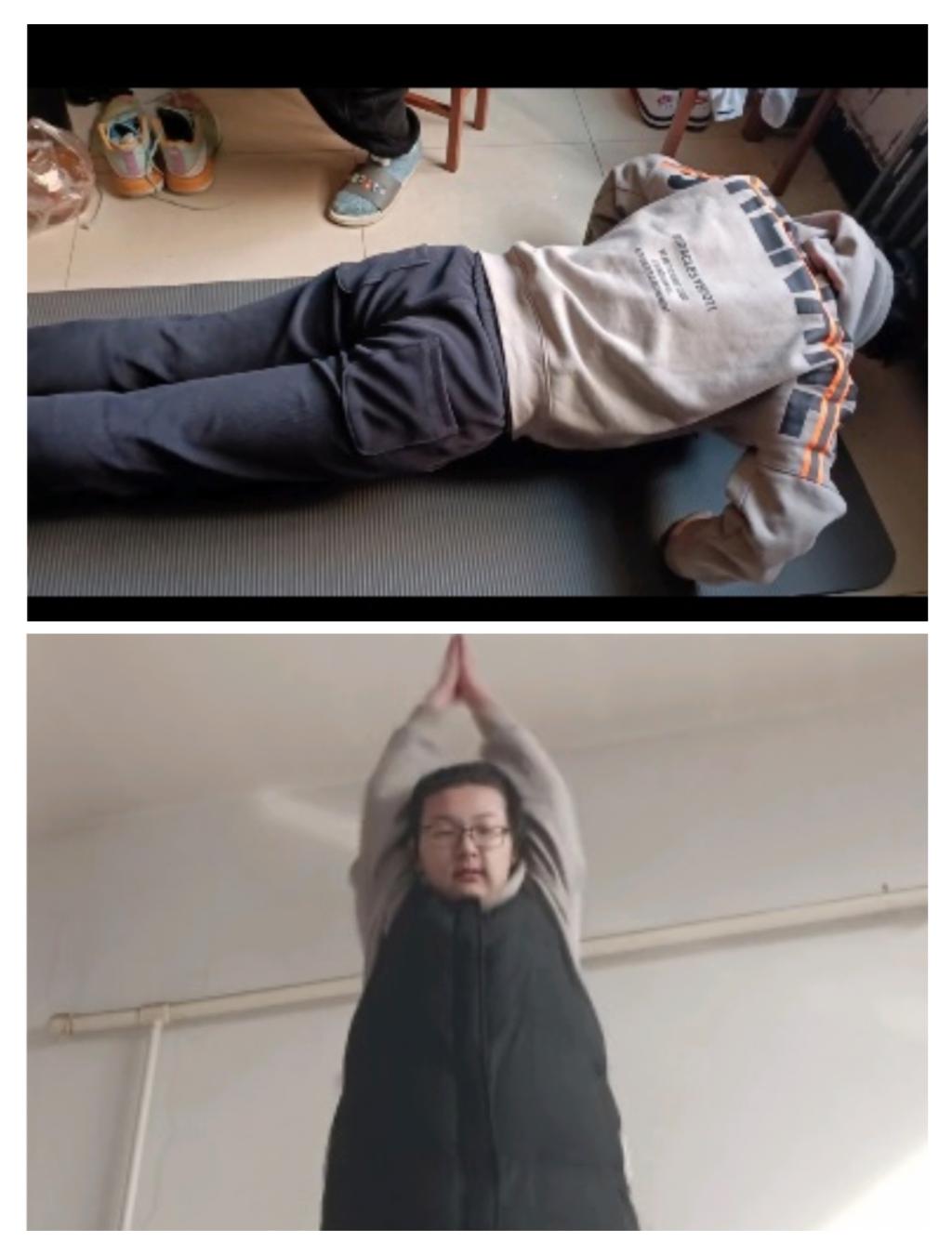 转眼间我们已经来到了第四学期的第三周,在本周我进行了平板支撑、开合跳的锻炼,由于现在疫情的原因,我们不少人的体质都有所下降,所以我们组内也进行了一系列的线上运动。