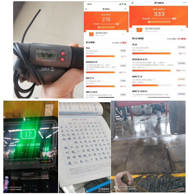 汽服201班第四学期第二周从1月16日开始,到1月21日结束,在此期间,机电系215组的同学马明鹤、王安琪、张振鹏,分别在家中完成了每日的字帖临摹、学习强国和居家锻炼任务。