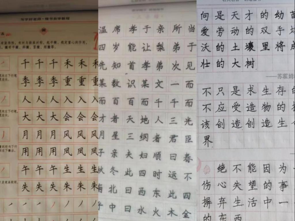 为了响应学校的号召,培养学生的三五能力中的“汉字书写能力”,机电系019组王丽雯,王兆丰,李佳欣在2023年1月17日早上在家中进行了第四学期必修项目字帖临摹。