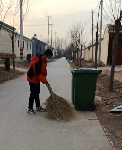 在1月17日,刘玉鑫在社区进行清扫街道的志愿服务。