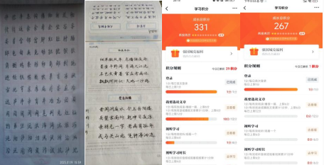 在本周内,各成员都能积极完成各项任务。徐璐琦、杨涛、宋青阳同学每天的字帖、学习强国任务都能按时完成。除此之外,小组成员还每天进行锻炼,承担家里的家务,进行大扫除和给父母做饭。