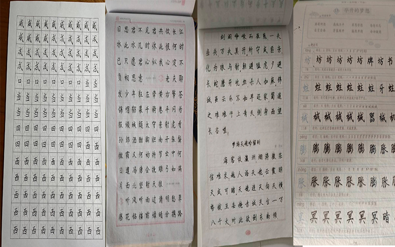 书法自古就被视为中华文人士大夫的必备修养,是中国上下五千年的优秀文化传统,作为中华文化的精髓,书法倍受中国人民的喜爱与推崇,所以,在第四周我们小组成员冯冬秋、华志鹏、马滕悦、李禹璇分别进行了“字帖临摹”活动。