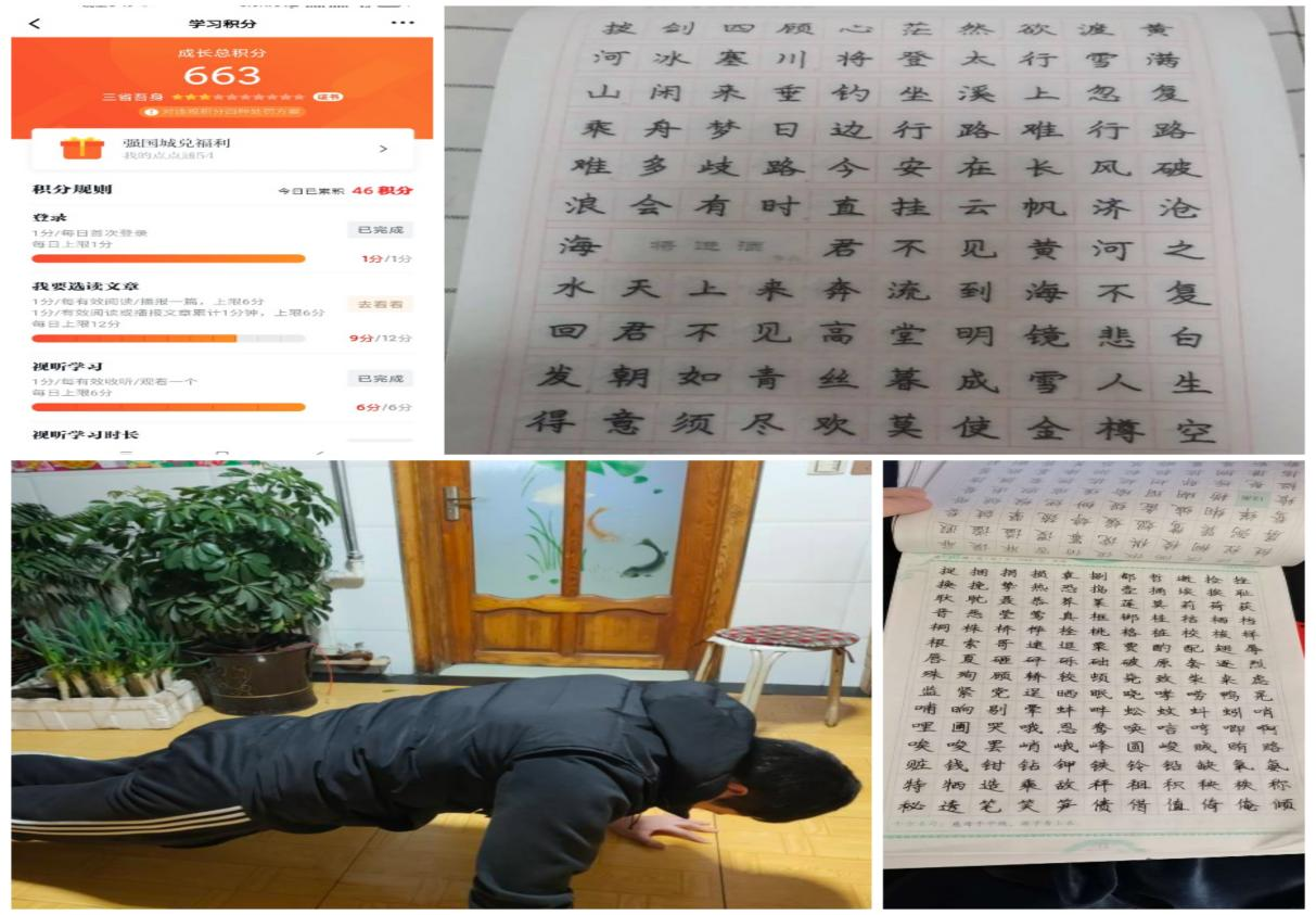 这个寒假并不顺利,我们都需要战胜疫情,截止本周,我们完成了感恩实践、读书交流、居家锻炼以及母校回访及相应的字帖任务,小组保证每周末要及时收齐当周相应的佐证材料,并与指导老师进行交流及总结完成情况,指导老师对本组完成情况表示肯定。我校创办第四学期培养孩子各项能力,通过第四学期,我们磨练自己,我们通过组队完成任务中,学会团结合作的重要性。