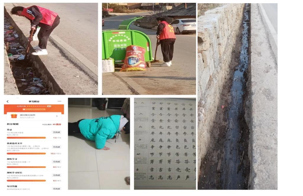 在本周,正值春节期间,小组成员宋鑫涛在家里帮助父母擦洗地板,减轻父母的家务劳动负担。