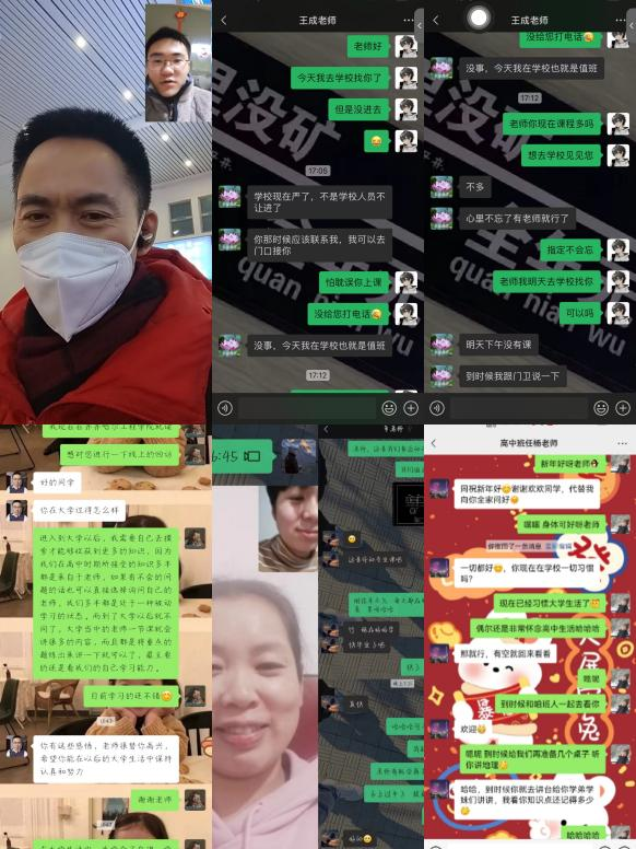 在春节休息期间,组长吕欢欢同学也不忘提醒组员借着春节的喜庆氛围,为自己曾经的老师带去最诚挚的新年祝福,各位组员也在春节探亲之余,或当面或在线上地对自己曾经的老师班任献上了新春的祝福,各位老师的喜悦之色也是洋溢在他们的笑意中。
