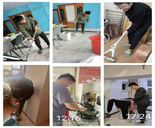 2023年2月8日,机械202班孙百圣、刘德龙、刘天宇三位同学继续开展了第四周的感恩实践活动,我们小组从打扫卫生,做饭,洗衣服等方面全方位的进行了劳动,既增加了我们每个人的能力,也像家人展示我们在学校的思想上,能力上的进步。