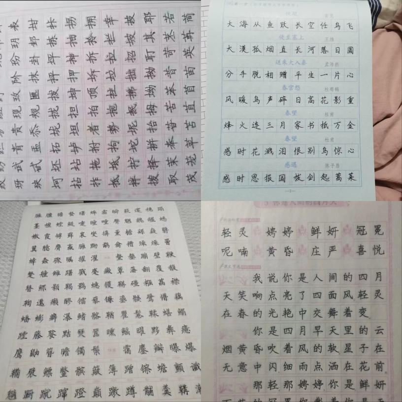 在这段时间以来,我们每个人都有在认真的练字,可以明显的观察出我们的字体变化,相比较以前好了很多。