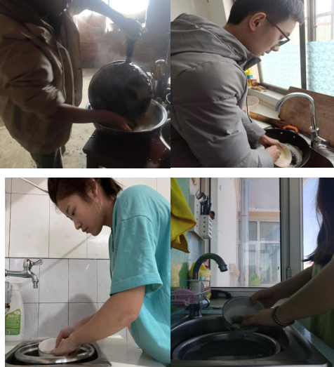 2023年2月15日我们236组进行了劳动实践活动,参加成员有樊美琪、林涛、梁波、吕嘉毅。于家中帮父母干了一些力所能及的事,大家都进行了洗碗这一劳动实践。