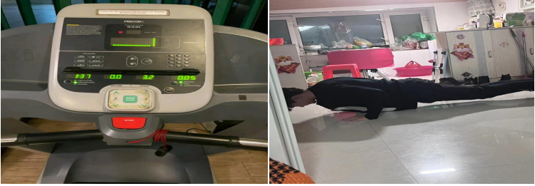 生命在于运动。坚持每日进行适当运动,会对我们的身心健康都有益处。我组成员每日进行不同类型地锻炼,不仅强健了体魄而且也会适当的缓解压力,克服惰性。