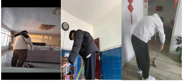 我们居家劳动的方式虽然一样,但是都包含了我们对劳动的热爱,孙珏、王金硕、孙佳宝都选择了扫地,能够时刻保持家里的卫生干净整洁,是我们所期待的。