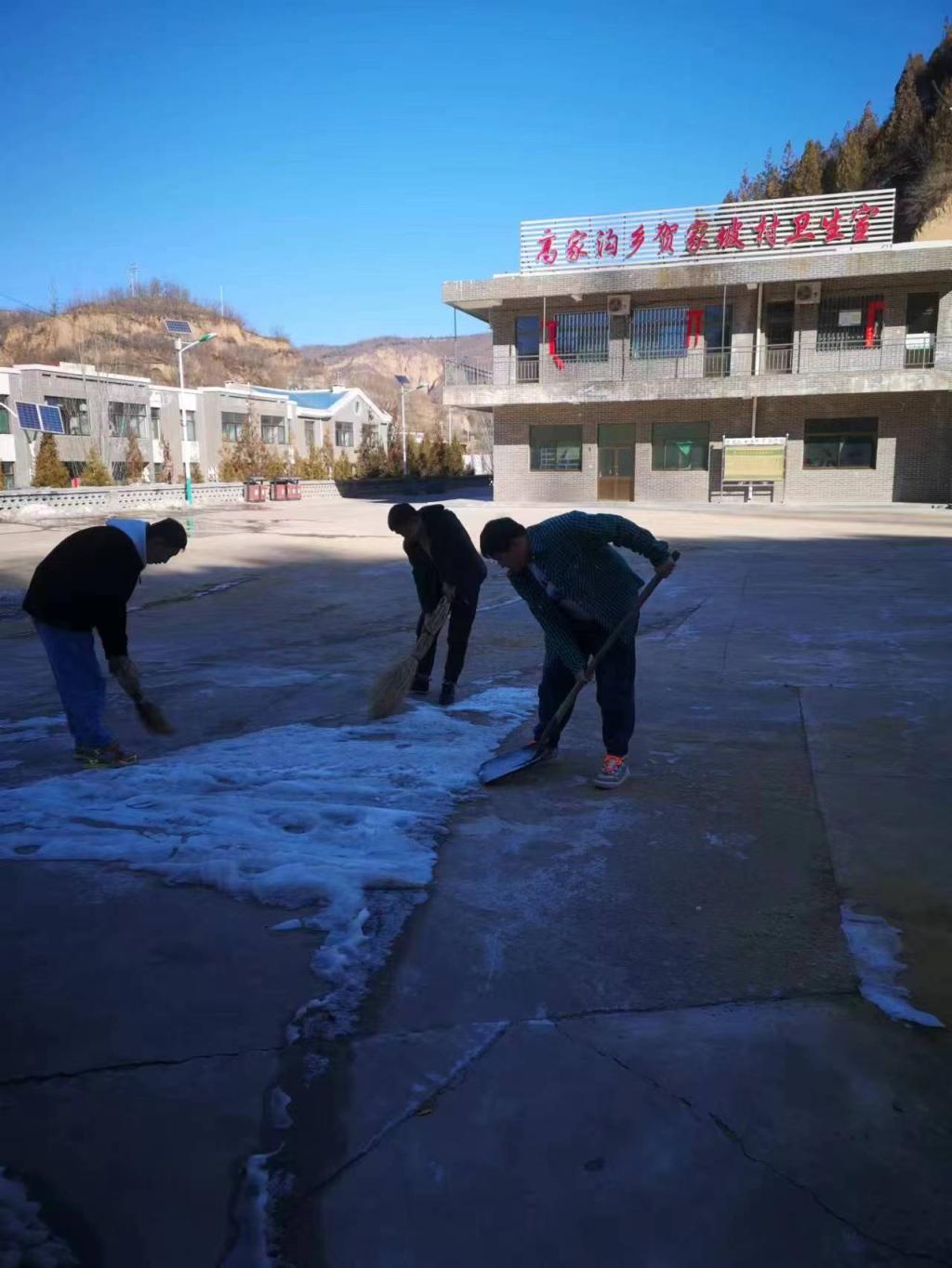 活动中,志愿者们分工明确、齐心协力,充分发扬不怕苦、不怕累的精神,五人一队,三人一组,拿着铁锹、铲子,卖力将积雪堆到道路两侧,挥舞着铁锹、扫帚。虽然大家的手和脸都冻得通红,但大家不畏严寒,干劲十足,在村委党员的带动下,不少村民也自发投入到“扫雪铲冰行动”中。“志愿服务人人可为,文明实践人人践行!”