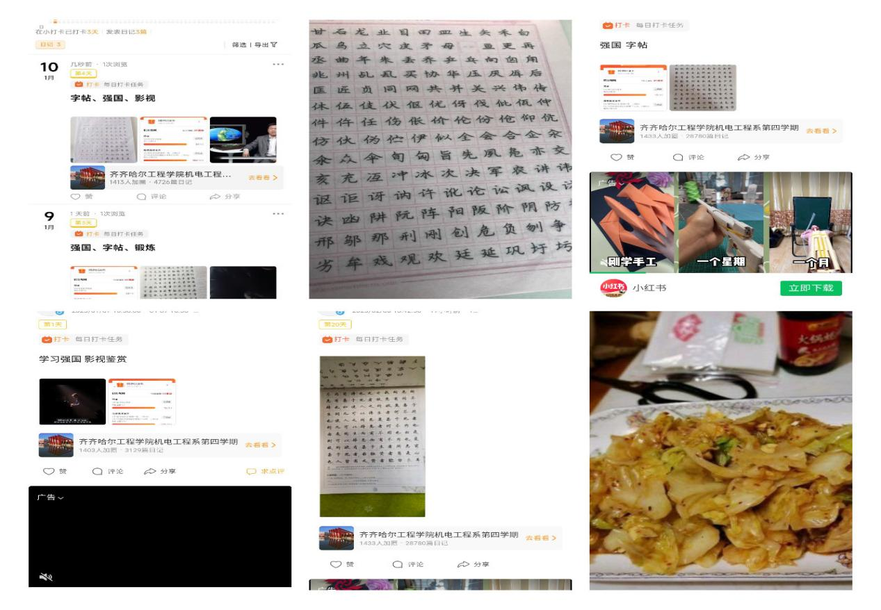 第四学期第五周从2月13号开始到2月19日结束,机电系15组的同学完成了每日的字帖、强国打卡、居家锻炼以及感恩实践任务。